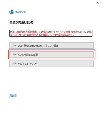 パスワードの入力後に「問題が発生しました」と表示された場合は、「アカウント設定の変更」をクリックしてください。