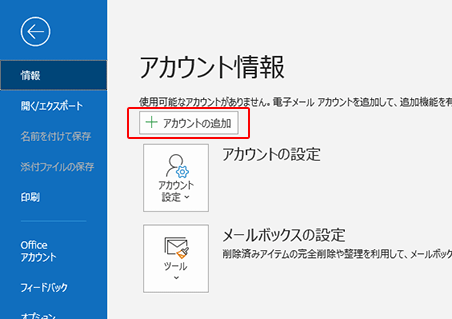 「アカウントの追加」をクリックします。