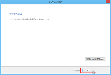 ※表示されていない場合は、「Microsoft Outlook 2013 スタートアップ」が表示されない場合の手順から進めてください。