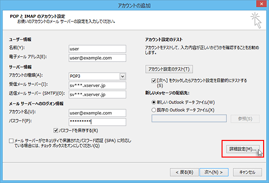 Microsoft Outlook 2013 アカウントの設定方法(overSSL設定)